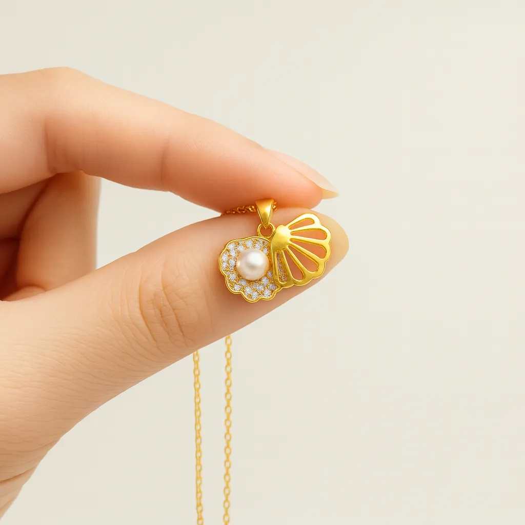 سلسلة بقلادة صدفية مرصعة بحجر لؤلؤ