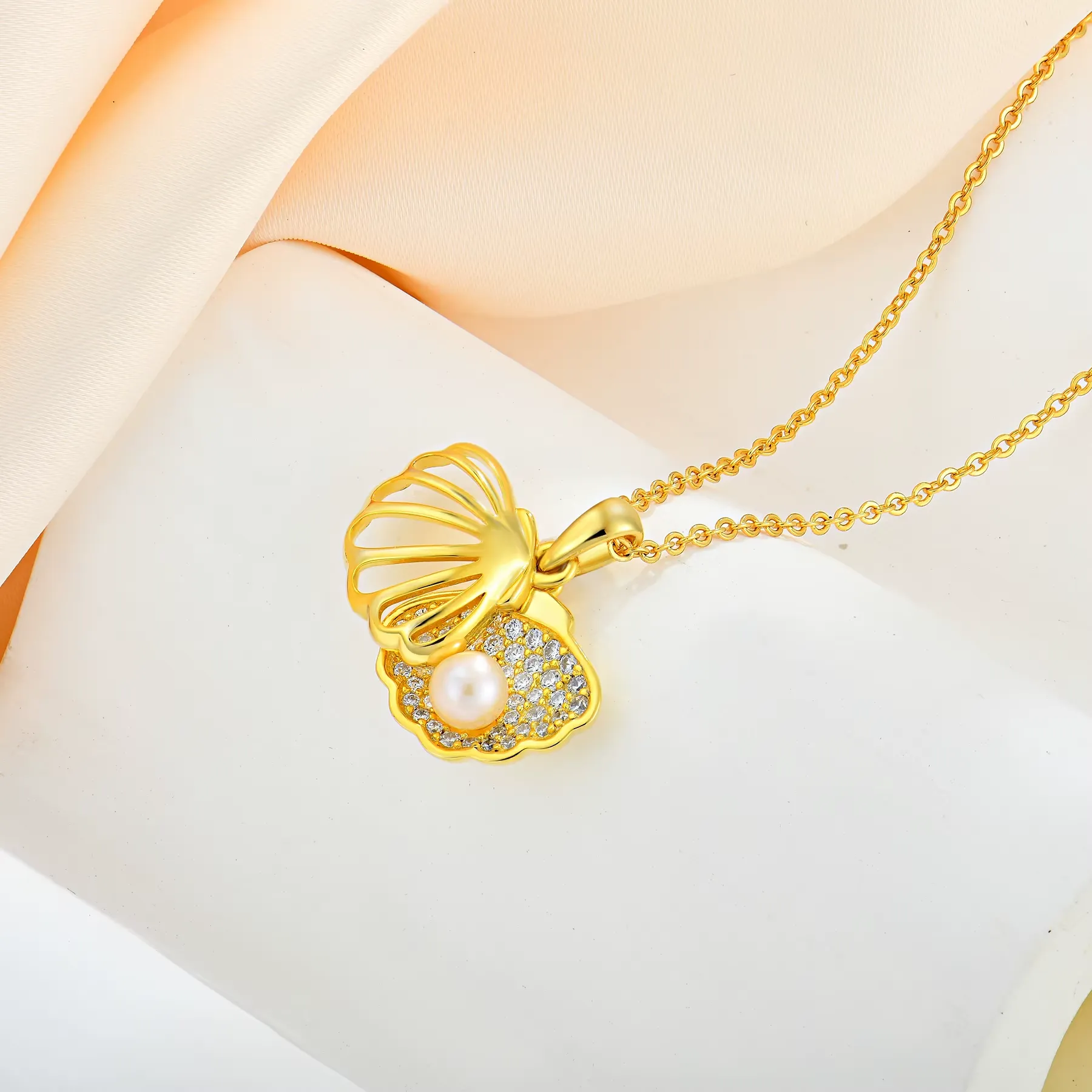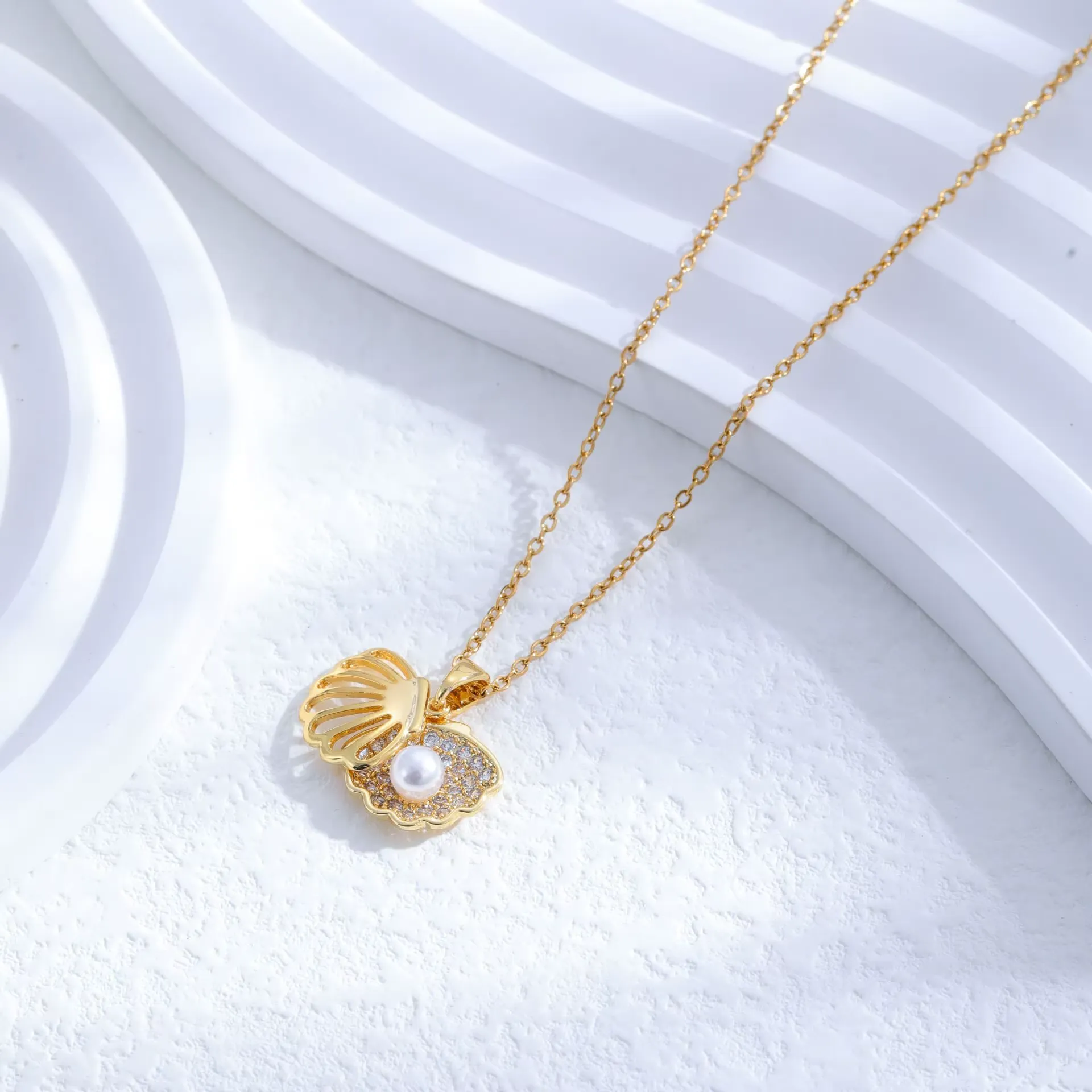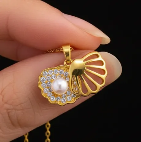 قلادة صدفية فاخرة بحجر لؤلؤ من الفلاذ المقاوم لصدأ شبيه ذهب 21 قراط 1 2300 د.ج