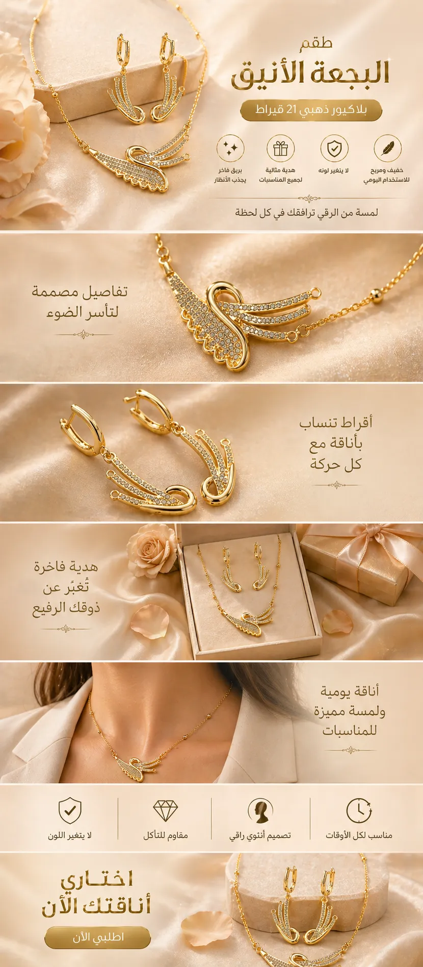 طقم البجعة الأنيق مستوحى من الذهب الحقيقي عيار 21 قيراط 1 2700 د.ج