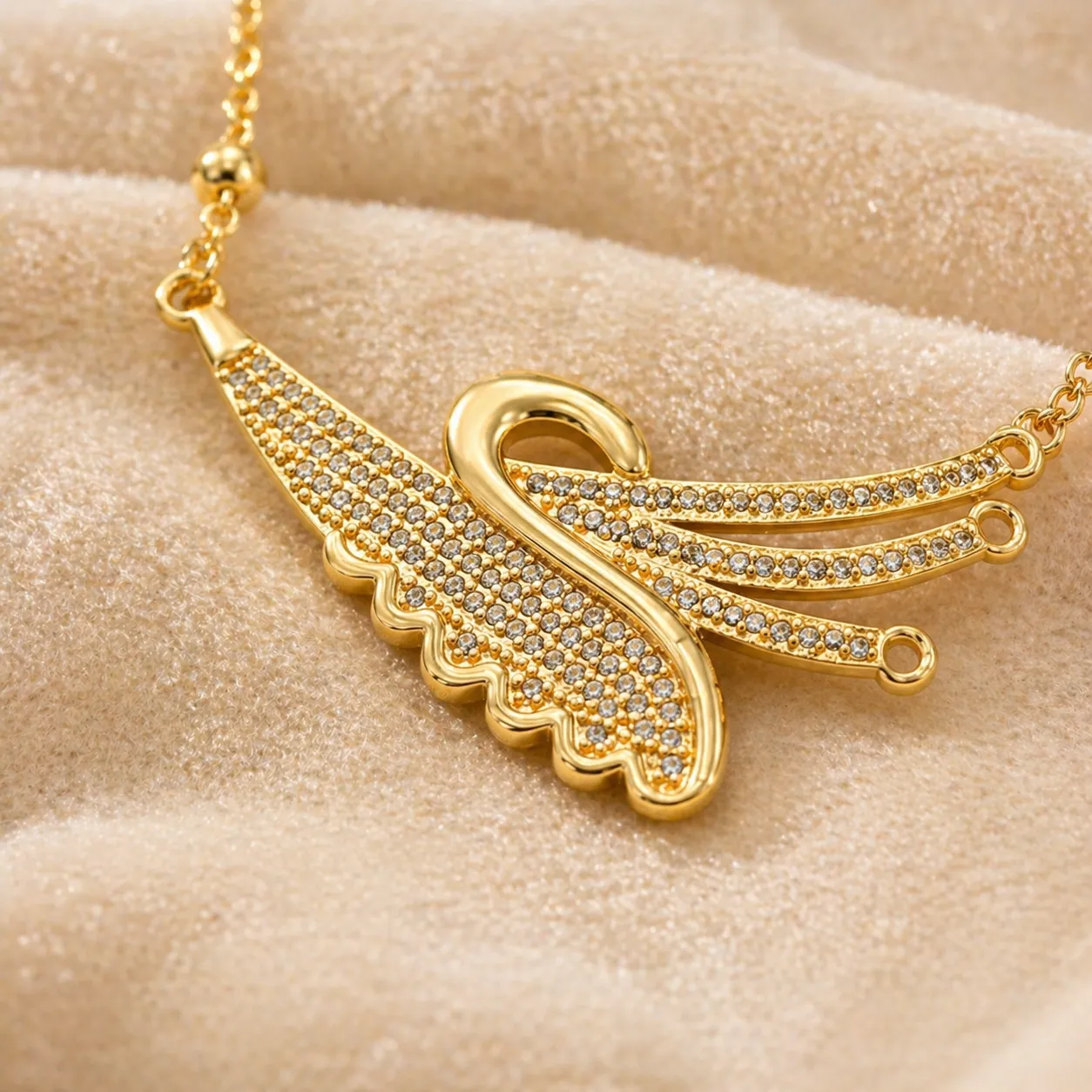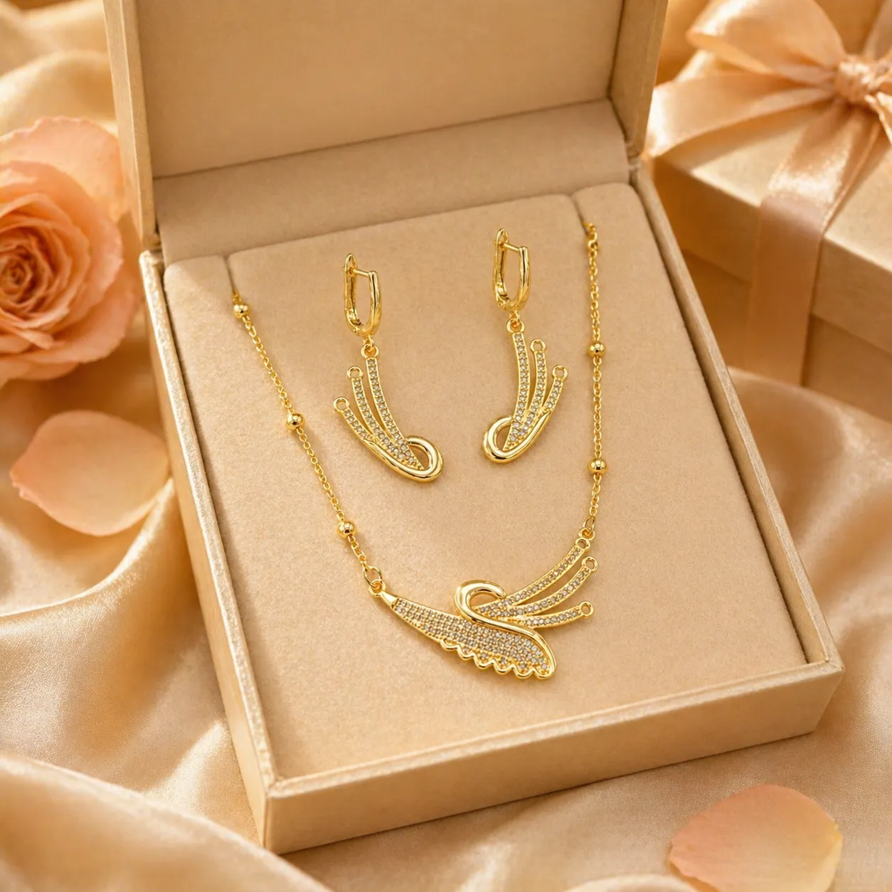 طقم البجعة الأنيق مستوحى من الذهب الحقيقي عيار 21 قيراط