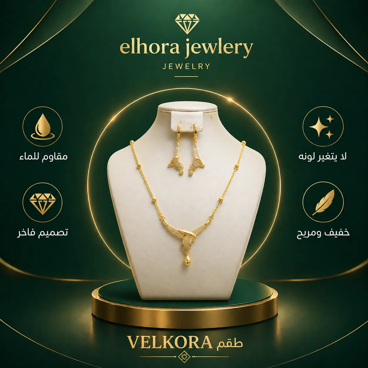 طقم VELKORA – تصميم فاخر ببلاكيور أصلي بلون ذهب عيار 21 ولمعان يدوم